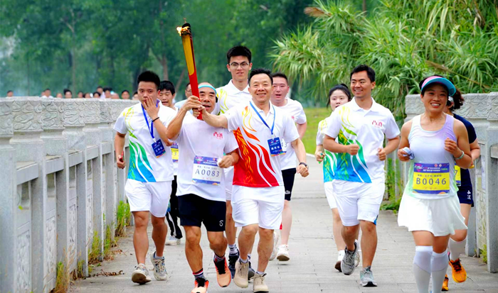 参赛者、火炬手身处郁郁葱葱赛道,领略着嘉陵江畔的美景,享受着运动的快乐。其中,有年幼的孩子,有年轻的跑步达人,也有精神矍铄的长者,他们身着各色服装,汇成了一条多彩缤纷的海洋,在阳光下更显激情与活力。夏日的微风与跑友们的激情友好碰撞,整个公园的景致都被点缀得分外绚烂。