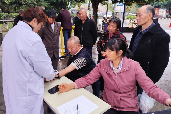 中国西部传统文化网四川讯(特约通讯员 钟名扬)为积极响应国家养老服务号召,切实关爱社区老年群体健康,2025年10月22日上午9:30至11:00,三河街道长龙社区关工委在毗河苑1期广场精心组织了“爱心义诊(二)”活动,为社区60岁以上居民提供免费医疗诊断与健康咨询服务,吸引20余名老年居民踊跃参与。 活动现场,社区卫生院工作人员认真为老人们测量血压,针对高血压、高血脂等慢性病的预防和日常护理问题,耐心细致地答疑解惑。对于老人提出的失眠、关节疼痛等症状,医护人员结合个体情况,给出专业健康建议,并普及科学保健知识。 |