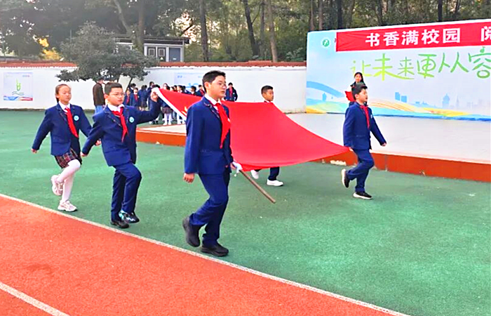 中国西部传统文化网四川讯(特约通讯员 李敬平)书如山泉,可净化心灵;书似凝露,可滋润德行。为激发学生的阅读兴趣,营造浓厚的读书氛围,构建书香文化校园,11月27日,成都市新都区斑竹园小学关工委举行了主题为“书香满校园•阅读向未来”的国旗下的思政课。 鲜艳的五星红旗庄严而神圣,像熊熊的烈焰,点燃竹宝们满心的激动与自豪,点燃他们内心理想的火种。五年级2中队的同学们带来国旗下的表演《登鹳雀楼》。她们跟着激昂的节奏,用灵动的手势演绎“欲穷千里目,更上一层楼”的豪情,在朗朗诗词中彰显阅读的力量,在动感舞姿中传递奋进的信念,让书香伴着梦想,播撒进每个竹宝的心田。 杜秀梅老师做国旗下讲话。杜老师教导同学们,阅读不仅是获取知识的途径,更是滋养心灵、增长智慧的钥匙,它能让我们拥有开阔的眼界,坚定追求梦想的勇气。她还引导竹宝们应当把阅读当作日常习惯,时长捧书阅读,与家长共读,同老师交流,和同学分享,在阅读中收获成长。 黄晓霞老师对上周值周情况做了总结,黄老师对同学们上周的整体表现予以了肯定,并教导他们要合理使用校园公物,要爱护它们。学校为上周优秀班级颁发“向上竹节”,激励他们再接再厉。同学们,愿我们以书为友,以读为伴,在墨香中积累力量,在文字中汲取养分,用阅读点亮童年,用知识书写属于你们的精彩未来! |