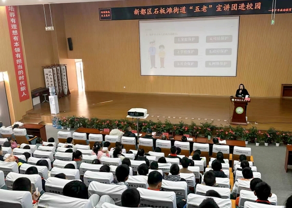 中国西部传统文化网四川讯(特约通讯员 尹华珍)进一步强化小学生法治观念,筑牢校园安全防线,引导青少年“学法、知法、守法、用法”,11月20日,新都区石板滩街道关工委“五老”宣讲团走进木兰小学,为250余名师生带来了一场以《中华人民共和国未成年人保护法》《中华人民共和国预防未成年人犯罪法》为核心的法治教育盛宴。本次活动由宣讲团廖琼玉老师主讲,她将法律知识转化为孩子们易懂易记的成长指南。 廖老师结合自身教育工作经历,针对小学生的生理心理特点和认知规律,摒弃生硬的法条解读,以“身边事”讲“身边法”。通过三个校园真实案例展开讲解:在解读《未成年人保护法》时,她以“课间追逐致伤案”说明学校保护与自我保护的重要性,结合法律条款强调“校园活动守规则就是护安全”;针对网络保护内容,她用“未成年人打赏主播追回案”生动阐释了法律对未成年人财产权的保护,提醒同学们“不随意透露家庭信息、不沉迷网络游戏”,牢记“每日22点后游戏平台会‘休息’”的法律规定。为增强宣讲实效,活动设置“安全锦囊”互动环节。“遇到陌生人给零食怎么办?”“收到网络辱骂该如何应对?”“同学借钱不还能私自拿他东西吗?”面对宣讲团提出的问题,同学们踊跃举手、积极应答。