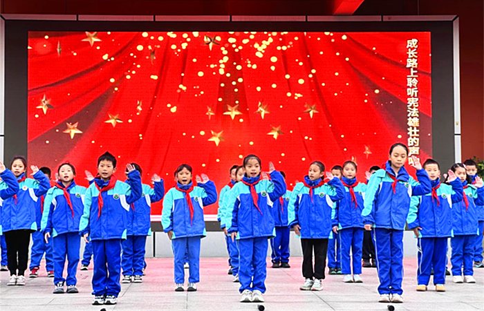 中国西部传统文化网四川讯(特约通讯员 李敬平)在国家宪法日宣传活动中,12月17日,成都市新都区旃檀小学关工委开展“一生有‘宪’•‘法’护一生”主题宣传教育活动。主持人精神饱满,引领全体师生开启这场法治启蒙之旅。 活动伊始,鼓号声中五星红旗冉冉升起,师生们肃立致敬,爱国情怀与法治敬畏油然而生。商惠琳老师和郑杨老师以《与宪同行,向阳生长》为主题发表国旗下讲话,以通俗语言解读宪法作为“权利保障书”的意义,阐明其对少年儿童受教育权、人格尊严的守护作用。 三年级1中队的《少年学法,筑梦未来》和三年级10中队的《一生有“宪”,“法”护一生》主题展演生动鲜活,传递出少年学法用法的坚定信念。此次活动让宪法精神内化于心,为孩子们的成长点亮法治明灯。 |