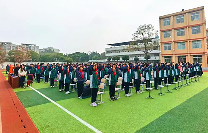 中国西部传统文化网四川讯(特约通讯员 李敬平)为缅怀历史、激扬青春、砥砺爱国之志,2025年12月26日下午,成都市新都区马家中学关工委隆重举行新团员入团仪式开展“铭记历史守初心•爱国奋进新征程”主题教育活动。全体师生齐聚一堂,在庄严的仪式与真挚的表演中,共同回望那段热血澎湃的历史,汲取奋进新时代的青春力量。 活动在激昂的开场白中拉开序幕。国旗护卫队步伐铿锵,全场肃立。在雄壮的国歌声中,五星红旗冉冉升起,爱国情怀在每一个人心中激荡。王云武书记为此次活动致辞,他对同学们说:历史的接力棒正在传递到你们手中。传承,不仅仅是铭记,更是要将这份厚重的精神力量,转化为日常学习生活中的具体行动。他向同学们提出四点希望:第一,遵守规矩,涵养“不敢先人”的谦逊与敬畏。第二,热爱学习,积蓄“不敢后身”的底气与才华。第三,团结同学,凝聚“众行致远”的温暖与力量。第四,珍爱生命,奠定“服务社会”的根基与前提。青春逢盛世,奋斗正当时。愿同学们以先辈为榜样,把个人理想融入民族复兴的壮阔征程,用勤奋锤炼本领,用责任书写青春,让“一二·九”的薪火在校园中代代相传,让爱国奋进的力量照亮未来之路! 在团旗见证下,一批先进青年光荣加入中国共产主义青年团。出团旗、宣读名单、颁发团徽、庄严宣誓、新老团员代表发言……每一个环节都凝聚着青春的理想与责任。学校党支部副书记王为根向新团员提出殷切期望,鼓励他们牢记使命,争做表率。九秩回响,青春作答。九十年前,前辈以呐喊叫醒沉睡的土地;今天,马家中学的少年以朗诵、以歌声、以舞步,把“天下兴亡”的责任,写成了自己的青春注脚。 七年级一班的朗诵里,“少年强则国强”的誓言未落,七二班的《我和我的祖国》便以歌声接住了这份滚烫;八年级的舞台上,《青春的火炬》点燃救亡图存的记忆,《请回答1935》又将1935年的风雪揉进2025年的心跳;《觉醒年代》饱含着对先辈的敬仰与对家国的赤诚。九年级的《紫荆花开》里,一朵花的团圆写满家国深情,《雪,落在中国的土地上》映照出一个民族的坚韧与求索,《万疆》的舞步中,山河锦绣成了少年最生动的注脚。 此次主题教育活动不仅是一场仪式,更是一堂生动的爱国主义思政课。它让“一二·九”运动所展现的爱国、进步、民主、科学精神,穿越90年时光,深深植根于每一位马家中学学子的心中。 |