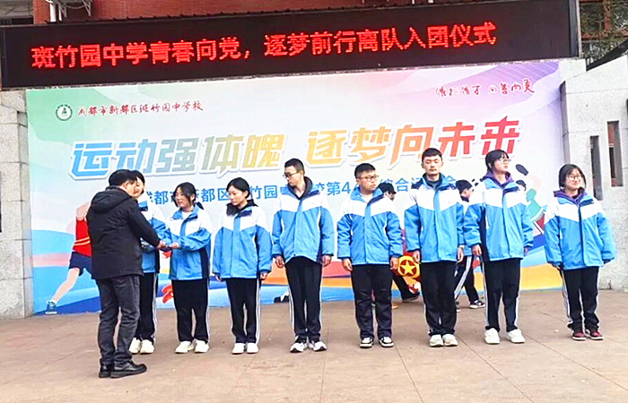 中国西部传统文化网四川讯(特约通讯员 李敬平)时光缱绻,镌刻下成长的足迹;青春激昂,奏响奋进的新章。在充满希望与活力的日子里,2026年1月4日,成都新都区斑竹园中学关工委隆重举行了“告别少先队,迈向共青团——青春向党,逐梦前行”离队入团仪式。学校领导、老师与同学们齐聚一堂,共同见证这一庄严而神圣的时刻,为青春的蜕变喝彩,为梦想的启航助力。 仪式在庄严的氛围中拉开帷幕。当激昂的国歌奏响,全体人员肃立,奏唱国歌,升国旗。学校团支部书记岳玥老师宣读了本次新入团团员名单。每一个名字,都承载着同学们的努力与期望;每一次宣读,都仿佛是对青春梦想的召唤。“我志愿加入中国共产主义青年团,坚决拥护中国共产党的领导……”在领誓人张滋豪同学的带领下,全体新团员面向团旗,举起右拳,庄严宣誓。那铿锵有力的誓言,在会场中回荡,彰显着新团员们的坚定信念和决心。他们用誓言诠释着对共青团的忠诚,对祖国的热爱,对未来的憧憬。这一刻,他们立下了青春的誓言,许下了奋斗的承诺,将用实际行动践行共青团员的使命与担当。 新团员代表上台发言,分享了入团后的激动心情与未来的奋斗目标。她的话语中充满了对共青团的向往与热爱,对成长的感悟与思考。她表示,我们会以团员的标准严格要求自己,课堂上认真听讲、课后积极进取,用优异的成绩诠释青春的价值;我们会团结同学、服务集体,在校园活动中勇挑重担,我们更会牢记入团誓言,把个人理想与祖国发展相连,让青春在奋斗中绽放光彩。 随着主持人宣布斑竹园中学离队入团仪式圆满结束,各班有序退场。但这一仪式所带来的影响,却将深深烙印在每一位同学的心中。它不仅是一次简单的仪式,更是一次心灵的洗礼,一次成长的蜕变。它让同学们更加明确了自己的责任与使命,激发了他们为实现梦想而努力奋斗的热情。