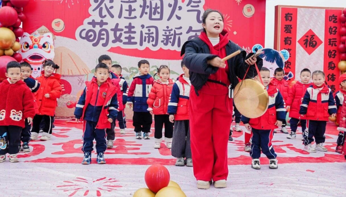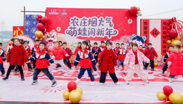活动在热闹的跨年入场仪式中拉开序幕。欢快的新年音乐响彻农场,孩子们牵着家长的手依次跨过福门,沿途收获老师们的暖心祝福,清脆的笑声回荡在田园间,瞬间点燃了喜庆的迎新氛围。