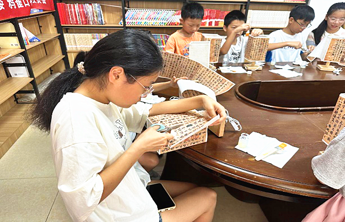 中国西部传统文化网四川讯(特约通讯员 李敬平)当传统诗书画的灵秀,邂逅手作灯盏的温婉,一场文化与艺术的美妙碰撞,在鸦雀口社区悄然上演。2025年8月21日,依托社区保障资金,由成都市新都区斑竹园街道鸦雀口社区关工委主办的“灯承墨韵•素盏题字”青少年诗书画社活动,如一缕清风,为青少年们的生活拂来传统文化的馥郁芬芳。 活动现场,宛如一方诗意天地。孩子们围坐其间,眼眸里满是对传统文化的好奇与向往。在社工的悉心引导下,他们小心翼翼地拿起工具,将书法纸张贴于灯盏之上,纸张与灯盏的质朴之美相融,仿佛在诉说着古老文化的悠悠故事。孩子们全神贯注,将对传统文化的热爱,都倾注于手中的作品之上,让普通的灯盏,在他们的巧手下,渐渐焕发出独特的艺术光彩。 通过此次活动,青少年们不仅锻炼了动手实践能力,更在亲身体验中深入感受诗书画艺术的独特魅力,近距离领略中华传统文化的博大精深,为传统文化的传承与发展注入了青春活力,也让社区青少年的精神文化生活更加丰富多彩。