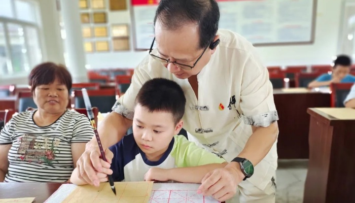 中国西部传统文化网四川讯(特约通讯员 张晶)8月25日上午,同盟村会议室墨香四溢,一场跨越年龄的暑期书法课堂在此开课。课堂以“墨韵传承·书写童趣”为主题,由同盟村携手同心圆社工共同策划。活动现场,7岁孩童与70岁长者同堂挥毫,在书法名师包昭煦的带领下,共赴一场汉字文化与艺术修养的奇妙之旅。
