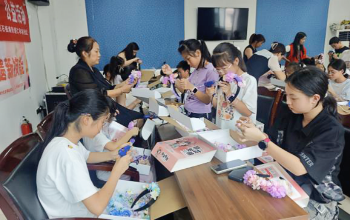 活动开始,老师先讲解了簪花历史渊源、朝代样式变化及现代传承,随后进入手工制作环节,老师演示簪花制作基础步骤与注意事项,青少年动手实践。初期部分人操作生疏,逐渐熟练,也有的两两合作,耗时近两小时完成各具特色的簪花。 此次活动不仅丰富了孩子们的暑期生活,锻炼他们的动手、专注能力,培养耐心细心品质,还提升自信与表达力,也提升了社区文化内涵与凝聚力,获得居民一致好评,加强了社区与居民联系。 |