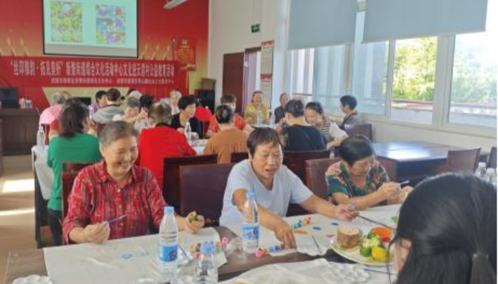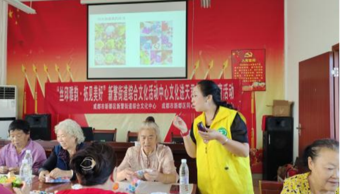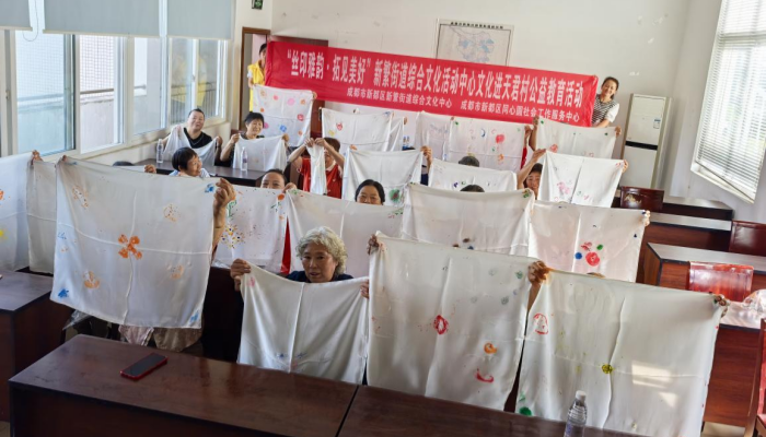 中国西部传统文化网四川讯(特约通讯员 张晶)9月19日上午,成都市新都区新繁街道综合文化活动中心携手成都市新都区同心圆社会工作服务中心,在天君村村民委员会会议室成功举办“丝印雅韵·拓见美好”文化进乡村公益教育活动。活动以“文化传承+居民参与式体验”为核心,将非遗文化与果蔬相融合,通过果蔬拓印丝巾创作,引导村民感受传统文化魅力,搭建邻里交流平台,助力乡村文化振兴。 活动伊始,社工以趣味破冰游戏“我的菜园里有什么?”拉开序幕。村民们围绕种植的果蔬积极互动,在轻松的氛围中打破陌生感,快速融入活动。随后,社工详细介绍活动流程、创作规则及安全注意事项,同时结合PPT生动展示拓印历史,从传统拓印技艺讲到现代创新应用,让村民对拓印文化有了初步认知。 在“拓印的东方智慧”教学环节,社工现场演示果蔬拓印基础技巧:如何巧妙切割藕、洋葱、白菜等本土果蔬以形成独特纹理,怎样均匀蘸取颜料,以及如何控制拓印力度以呈现清晰图案。村民们认真观察、仔细记录,不时提出疑问,社工一一耐心解答,为后续创作打下坚实基础。