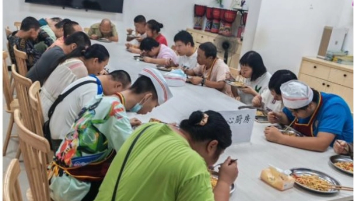 中国西部传统文化网四川讯(特约通讯员 钟名扬)为提升家园学员生活自理能力,2025年9月26日,五龙社区关工委联合新都区三河融乐阳光家园精心组织“开心厨房——凉面制作”技能实践活动,让学员在动手实践中掌握生活技能,收获成长乐趣。 活动前,家园的工作人员提前备好面条、黄瓜、胡萝卜等食材及刀具、菜板等工具,并针对洗菜、切菜、调味等关键步骤进行示范讲解,着重强调刀具使用安全及食材处理要点。 实操环节中,学员们热情高涨,分成小组有序行动。洗菜池边,大家认真冲洗食材,反复清理缝隙中的泥沙;操作台前,在家园工作人员的看护指导下,学员们握紧刀具,小心翼翼地将黄瓜切成细丝,虽动作稍显笨拙,却格外专注。食材备好后,众人围在一起学习拌凉面,从掌握酱汁比例到搅拌均匀,每一个步骤都认真模仿。当一碗碗色泽鲜亮、香气扑鼻的凉面完成时,学员们脸上露出了自豪的笑容。 此次活动以生活化的场景为载体,让家园学员在实践中提升了动手能力,增强了独立生活的信心。家园后续将持续开展此类技能活动,帮助学员掌握更多实用生活技能,为学员融入生活打下坚实基础。 |