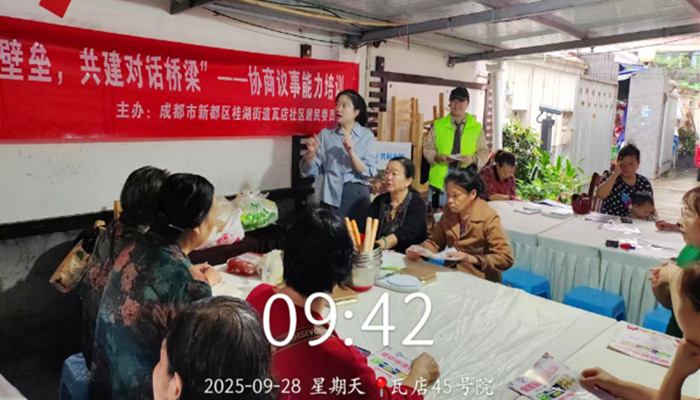 中国西部传统文化网四川讯(特约通讯员 贾光瑞)为提升院落骨干协商议事能力,打破邻里交流壁垒,构建和谐互助的社区氛围,9月28日瓦店社区关工委在自富路45号院举办“打破邻里壁垒,共建对话桥梁”——协商议事能力培训工作坊。 本次工作坊前期充分调研瓦店45号院实际需求,通过与院落骨干深度沟通,贴合院落情况,特邀经验丰富的社工担任主讲。培训围绕院落常见的公共事务协商难点、邻里沟通矛盾化解技巧、议事流程规范等内容展开。社工结合院落真实案例,拆解协商议事的关键步骤,通过情景模拟、分组讨论等互动形式,引导参与者沉浸式学习“如何倾听诉求”“如何清晰表达观点”“如何达成共识”,让居民真正实现“易了解、易参与、易执行”。活动还邀请到专业烘焙老师现场与居民开展手工DIY冰皮月饼制作。在指导老师的耐心讲解下,大家一步步尝试。过程中,居民们主动分享配色创意,互帮互助解决制作难题,在轻松愉快的氛围中不仅收获了颜值与口感兼具的冰皮月饼,更将培训中习得的沟通技巧转化为实际邻里互动,在协作中加深信任、凝聚共识。活动为后期院落开展常态化协商议事、组织邻里互助活动铺垫了良好基础,让“对话桥梁”从培训课堂延伸到日常生活。
