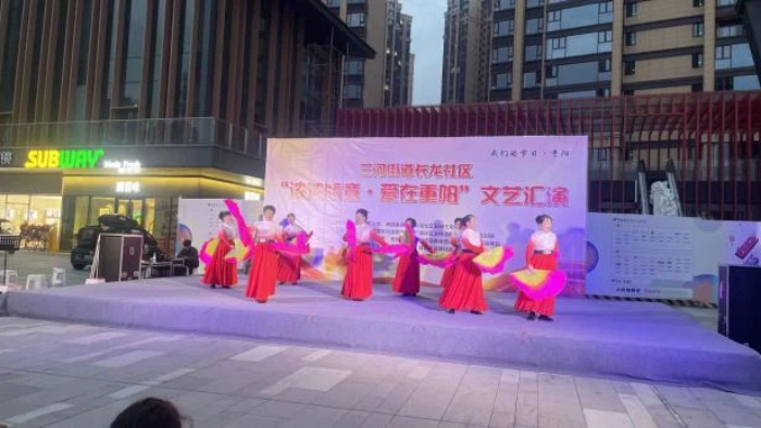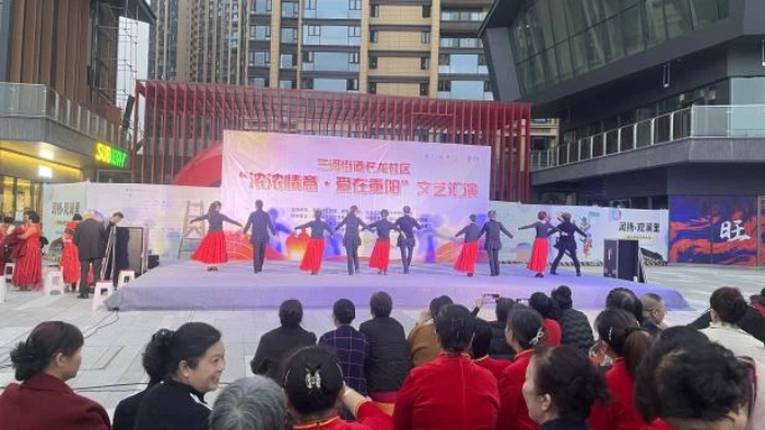 中国西部传统文化网四川讯(特约通讯员 钟名扬)10月29日晚,长龙社区润扬观澜鹭岛三期广场热闹非凡,一场重阳节主题暖心活动精彩开启,上百名辖区居民热情参与。 此次活动由长龙社区关工委精心筹备。17点,爱心义诊区域便排起了队,专业医师耐心为检查身体、答疑,给出专业健康建议。爱心商家也贴心送上花椒香囊,还普及实用养生知识,让居民收获关怀与健康小窍门。 18点,文艺汇演拉开帷幕,歌舞表演精彩不断,演员们用优美舞姿和动听歌声传递节日祝福与对生活的热爱,引得掌声阵阵。