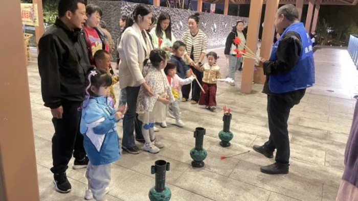 19点30分,传统游园会成为亮点。投壶射礼、茱萸香囊DIY等活动吸引众多居民。茱萸香囊DIY现场火爆,老人们与家人携手制作专属重阳记忆,共享天伦。 岁岁重阳,今又重阳。长龙社区借此次活动营造温馨氛围,弘扬尊老美德。未来,社区还将开展更多活动,提升居民幸福感与归属感,让社区成为温暖家园。