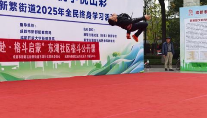 | 中国西部传统文化网四川讯(特约通讯员 张晶)在全民终身学习活动周的热烈氛围中,2025年11月13日,新繁街道东湖社区关工委在新繁东湖森林广场成功举办“拳力以赴·格斗启蒙”东湖社区格斗公开课。活动吸引了50余名孩子和社区居民,其中孩子们的身影格外活跃,大家在专业展示与亲身体验中,共同领略格斗运动的独特魅力,感受强身健体、防身自卫的实用价值,让学习理念与运动精神在互动中悄然萌芽。