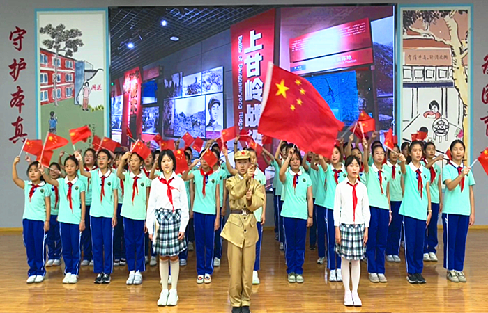 中国西部传统文化网四川讯(特约通讯员 李敬平)2025年11月14日,成都市新都区旃檀小学关工委开展“铭记英雄志•传承爱国魂”活动,活动首先旃檀小学举行主题升旗仪式,以纪念抗美援朝纪念日,引导师生铭记英雄、传承爱国情怀。 伴随着雄壮的国歌,五星红旗冉冉升起,全体师生肃立致敬。随后,昝部长作国旗下讲话,深情回顾抗美援朝英雄事迹,号召同学们以英雄为榜样,厚植爱国情怀。六年级6中队带来少先队主题展演《穿越时空的志愿军》,通过情景剧再现英雄岁月。五年级3中队演唱《如愿》,用悠扬歌声诉说对英雄的缅怀与传承之志。整场仪式庄重感人,让爱国精神在师生心中扎根。 |
