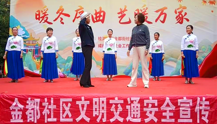 中国西部传统文化网四川讯(特约通讯员 贾光瑞)2025年11月13日成都市新都区桂湖街道金都街社区关工委在八二一广场开展“暖冬艺演传安全·一盔一带护平安”交通安全宣传。金都街社区暖意浓,“暖冬序曲 艺暖万家”文艺演出热闹开演,这场以交通宣传为核心的演出,将“一盔一带”安全理念融入精彩节目,让居民在欢声笑语中筑牢安全防线。 舞台上,演员们用生动演绎传递安全知识:骑行电动车务必佩戴安全头盔,小小头盔是守护头部的“生命屏障”,关键时刻能抵御撞击、减少伤害;驾乘机动车无论前排后排,都要规范系好安全带,这跟“生命纽带”能在突发状况下缓冲冲击、守护生命。 主持人结合真实案例以案释法,提醒居民摒弃交通陋习:不逆行、不闯灯,骑行不违规载人,驾车不酒后上路。互动问答环节中,居民踊跃参与,现场掌声不断,安全知识在轻松氛围中深入人心。 此次演出以文艺为媒,让“一盔一带,安全常在”的理念走进千家万户。金都街社区关工委用暖心举措织密安全防护网,让暖冬里的安全提醒,成为守护居民平安出行的坚实保障。 |