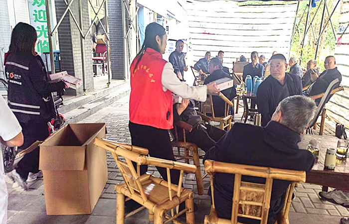 活动中,志愿者着红色志愿马甲向村民发放印有艾滋病防治知识的宣传资料,现场讲解艾滋病传播途径、预防措施及健康生活方式,引导大家科学认识艾滋病,消除歧视、主动防护。