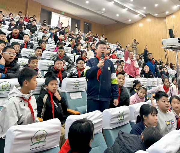 中国西部传统文化网四川讯(特约通讯员 尹华珍)进一步强化小学生法治观念,筑牢校园安全防线,引导青少年“学法、知法、守法、用法”,11月20日,新都区石板滩街道关工委“五老”宣讲团走进木兰小学,为250余名师生带来了一场以《中华人民共和国未成年人保护法》《中华人民共和国预防未成年人犯罪法》为核心的法治教育盛宴。本次活动由宣讲团廖琼玉老师主讲,她将法律知识转化为孩子们易懂易记的成长指南。 廖老师结合自身教育工作经历,针对小学生的生理心理特点和认知规律,摒弃生硬的法条解读,以“身边事”讲“身边法”。通过三个校园真实案例展开讲解:在解读《未成年人保护法》时,她以“课间追逐致伤案”说明学校保护与自我保护的重要性,结合法律条款强调“校园活动守规则就是护安全”;针对网络保护内容,她用“未成年人打赏主播追回案”生动阐释了法律对未成年人财产权的保护,提醒同学们“不随意透露家庭信息、不沉迷网络游戏”,牢记“每日22点后游戏平台会‘休息’”的法律规定。为增强宣讲实效,活动设置“安全锦囊”互动环节。“遇到陌生人给零食怎么办?”“收到网络辱骂该如何应对?”“同学借钱不还能私自拿他东西吗?”面对宣讲团提出的问题,同学们踊跃举手、积极应答。