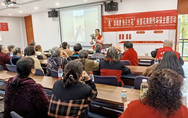 中国西部传统文化网四川讯(特约通讯员 尹华珍)为持续推进社区环保文化建设,将环保理念与手工创作相结合。2025年11月27日上午九点,由成都市新都区石板滩街道土城村关工委主办、新都区金林社区服务中心承办的“‘瓶’添绿意 指尖生花”创意花束制作环保主题活动,在土城村村委会二楼顺利开展。活动吸引28名“五老”志愿者参加。 活动开始,社工首先通过一段短视频向大家介绍了“变废为宝”的环保理念,激发了大家的参与兴趣。随后进入“创意实践”环节,志愿者有序发放扭扭棒、胶带等材料,结合实物演示详细拆解制作步骤与造型技巧。起初,老人们对材料使用略显生疏,但在志愿者一对一的耐心引导下,很快上手掌握基础技法。现场氛围温馨融洽,邻里间主动互帮互助、交流心得,手法愈发娴熟灵动。经过两小时的巧手创作,原本普通的扭扭棒在老人手中绽放成形态各异、色彩鲜亮的小雏菊。随后,大家将亲手制作的花朵错落插入自带的废旧瓶罐中,旧塑料瓶、空玻璃瓶经简单装饰与鲜花搭配,瞬间蜕变为独具个性的家居摆件,真正实现“旧物焕新”。活动最后,大家相互欣赏作品,脸上洋溢着满足的笑容,纷纷感慨将废弃瓶罐变为精美装饰,既富有意义又充满成就感。 此次活动的开展,不仅让老人们亲身体验了“变废为宝”的实践,锻炼了动手能力与创造力,更在寓教于乐中增强了环保意识。同时,也为社区构建了一个可推广的环保美育样板,有效增进了邻里情感。 |