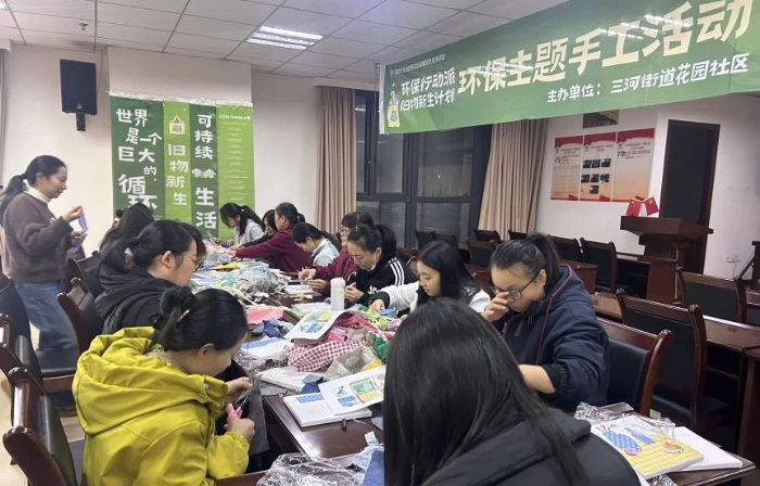 中国西部传统文化网四川讯(特约通讯员 钟名扬)为深入倡导绿色低碳生活理念,丰富社区居民文化生活,花园社区关工委于2025年11月26日在党群服务中心二楼活动室成功举办了“环保行动派,旧物新生计划”环保主题手工活动。本次活动将创意与环保相结合,吸引了二十余名社区居民的热情参与。 本次活动分为上下两场,围绕“旧物新生”主题,循序渐进地引导参与者体验了从平面艺术到立体实用的创作全过程。 活动在上午9:30准时开始。在花园社区睦邻妈妈团的带领下,参与者们将家中带来的旧衣物、碎布头作为主要创作材料。通过精心构图、巧妙裁剪与耐心粘贴,原本零散、废弃的布料被赋予了全新的艺术生命。一幅幅充满想象力的风景、动物或抽象图案跃然于画板之上,色彩斑斓,独具匠心,充分展现了“变废为美”的奇妙过程。 |