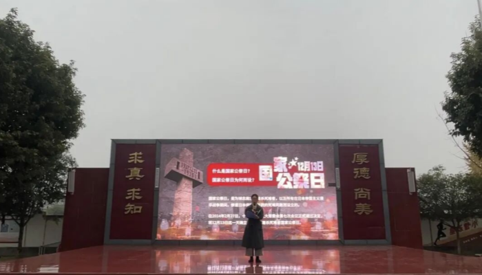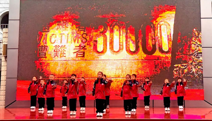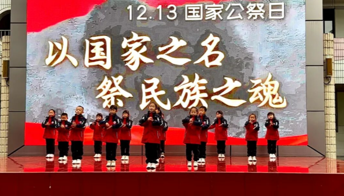 演绎传递敬意,用稚嫩却坚定的声音诉说着对先烈的缅怀,展现出新时代少年铭记历史的赤子之心。党员代表吴友英老师上台发言。她深情讲述南京大屠杀的惨痛历史,引导师生铭记民族苦难,珍惜当下和平。发言尾声,吴老师带领全体学生庄严宣誓,铮铮誓言回荡在校园上空,凝聚起“强国有我,勇担使命”的青春力量。