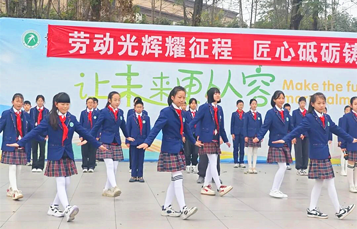 中国西部传统文化网四川讯(特约通讯员 李敬平)劳动是永恒的光荣,创造着跳跃的火光;劳动是激昂的旋律,谱写着不朽的篇章。为培养学生热爱劳动的好习惯,塑造他们砥砺奋进的匠心精神,2026年1月14日,成都市新都区斑竹园小学关工委开展了主题为“劳动光辉耀征程•匠心砥砺铸丰程”的国旗下的思政课。 鲜艳的五星红旗冉冉升起,鼓舞激励着全体师生,在他们心中燃起砥砺奋进的火种。在五星红旗的照耀下,我们深知劳动是点亮梦想的火种,匠心是成就未来的基石,请看六年级2中队的少先队员们用一双双稚嫩却有力的小手,一句句至美至真的歌颂,诠释着劳动的光荣,深情表达着我们的美好憧憬。六年级2中队的队员们在国旗下表演节目《双手筑梦想,劳动创未来》。