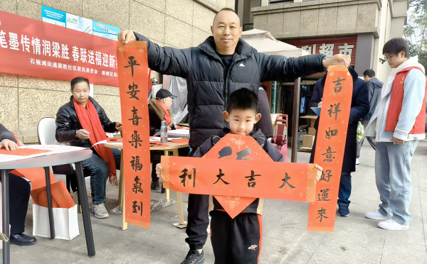 中国西部传统文化网四川讯(特约通讯员 尹华珍)新春将至,年味渐浓。为传承中华优秀传统文化,深化社区居民自治实践,让居民成为社区治理的主角,2026年2月10日,由成都市新都区石板滩街道梁胜社区居民委员会、梁胜社区关工委主办,同心圆社会工作服务中心协办的“我们的节日·春节——笔墨传情润梁胜 春联送福迎新春”主题活动。 在社区党群服务中心与湖心岛小区设点,特邀木兰书画院6位书法老师现场挥毫,社区青少年志愿者全程协助,两百余位居民主动参与、共襄盛举,在墨香氤氲中凝聚自治力量,绘就新春祥和图景。