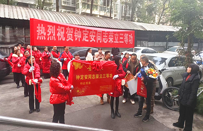 中国西部传统文化网四川讯(特约通讯员 李敬平)2026年3月2日,成都市新都区斑竹园街道关工委组织柏水社区五老腰鼓队前往辖区荣立三等功的现役军人钟定安家中,隆重送上立功喜报与新春祝福,以热烈仪式传递尊崇与敬意。 活动现场,喜庆的腰鼓铿锵有力、热闹非凡,引得邻里乡亲纷纷驻足喝彩。街道与社区领导为军属佩戴光荣绶带、送上喜报和慰问品礼金,与家属亲切交谈,详细了解家庭生活情况,对战士在部队忠诚履职、奋勇争先、荣立三等功表示热烈祝贺,对军属默默支持国防事业致以诚挚感谢。军属倍感光荣与温暖,表示将继续做好坚强后盾,鼓励孩子扎根军营、再立新功。 此次活动既让军人军属切实感受到“一人立功、全家光荣”的崇高荣誉,也进一步弘扬了拥军优属优良传统,营造了崇军尚武、关爱军人军属的浓厚社会氛围。 |