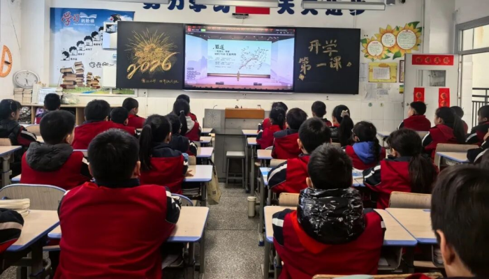 中国西部传统文化网四川讯(特约通讯员 张晶) 春风轻拂,万物舒展。2026年春季学期的第一天,繁江小学的校园里洋溢着蓬勃朝气。在这个农历丙午马年,一场以“策马扬鞭正少年,不负韶华争朝夕”为主题的开学典礼,为全体师生拉开了新学期的序幕。 伴随着激昂的出旗乐曲,全体师生肃立注目。在雄壮的国歌声中,五星红旗冉冉升起,少先队员们高举右手,向国旗致以最崇高的敬意。这一刻,爱国情怀在每一个繁小学子心中扎根。 成长路上,离不开师长的指引。党支部书记、校长叶波和党支部副书记王丽为全校师生送上新学期致辞。温暖有力的话语,如春风化雨,激励着孩子们在新学期里脚踏实地、勇敢追梦。 “少年自有少年狂,敢乘长风破万浪。”由大队部的同学们带来的诗朗诵《策马扬鞭正少年,不负韶华争朝夕》,将少年的豪情与梦想尽情抒发。每一个字句,都是对成长的承诺;每一份壮志,都将化为前行的动力! 当欢快的音乐响起,一群“快乐小马”蹦蹦跳跳地登台啦!稚嫩的舞步、灿烂的笑容,孩子们用舞蹈诠释着童年的活力。就像歌词里唱的那样:勇敢向前跑,未来无限好! 在“回顾2025心愿卡”环节中,各班代表上台领取了满载回忆的心愿瓶。回到教室后,孩子们小心翼翼地打开自己一年前写下的心愿卡——有的实现了梦想,骄傲地为自己鼓掌;有的还在努力路上,眼神更加坚定。主持人的话温暖又有力量。接着,大家认真地写下2026年的新心愿,郑重地放入心愿瓶中。一个瓶子,装着两年的成长故事;一张卡片,承载着崭新的希望。 为引导繁小学子扣好新学期的“第一粒扣子”,成都市新都区繁江小学组织全体学生观看了《开学第一课》。 本次开学第一课以“路”为核心线索,串联起古蜀道的文明传承、长征路的红色基因、“云上蜀道”的科技跃迁,为繁小学子带来一堂兼具文化厚度、红色温度与科技锐度的思政课,为新学期注入勇毅前行、开拓创新的精神力量。 |