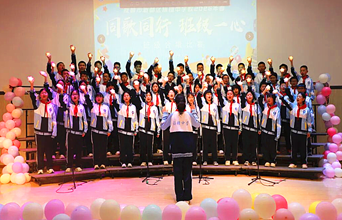 中国西部传统文化网四川讯(特约通讯员 李敬平)2026年4月27-28日,成都市新都区旃檀中学关工委隆重举办了“班级一心•同歌同行”七八年级班级合唱比赛。本次活动旨在繁荣校园文化,丰富课余生活,在陶冶情操的同时,着力培养学生的爱国情怀与集体荣誉感。舞台上,各班级精心编排、盛装亮相。从经典红歌到青春励志曲目,从悠扬合唱到创意编排,每一段旋律都饱含深情,每一句演唱都凝聚着全班同学的汗水与默契。同学们昂首挺胸、眼神坚定,用清澈的嗓音唱出青春的朝气,唱出集体的凝聚力,更唱出对校园、对未来的无限热爱。