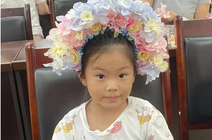 随后,居民们和小朋友在志愿者指导下动手制作。亲子家庭配合默契,小朋友安装花杆和花朵,家长细心插花。现场氛围温馨热烈,不一会儿,几十顶风格各异的簪花便制作完成。居民们戴上簪花合影留念,分享创作灵感,一位居民感慨簪花里满是对家人的爱。