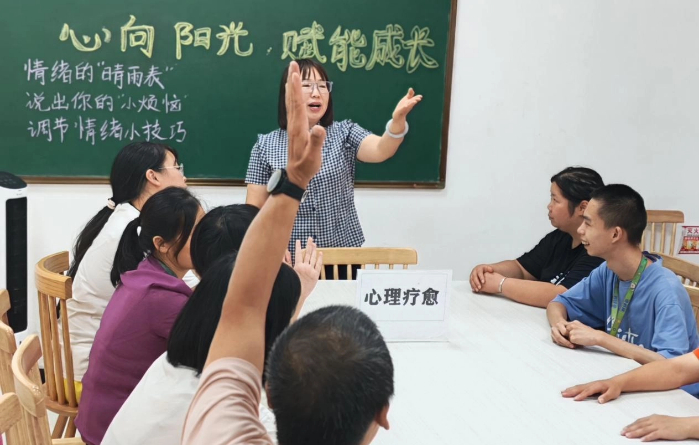 中国西部传统文化网四川讯(特约通讯员 钟名扬)为关注家园学员心理健康,帮助调节情绪、构建积极心态。2025年9月29日,五龙社区关工委联合新都区三河融乐阳光家园组织学员开展“心向阳光,赋能成长”主题心理疏导活动。 活动以“情绪晴雨表”互动开场,家园工作人员引导学员用“太阳”贴纸标注近期开心事,如“收到家人送的水果”“学会新手工”;用“雨滴”贴纸记录烦心事,如“出门不便”“情绪低落时无人倾诉”,直观梳理内心状态。 在“说出小烦恼”环节,学员们在鼓励下陆续起身,主动分享情绪困扰。从“担心给家人添麻烦”到“外出时怕被议论”,真诚的表达引发共鸣,其他学员轻声安慰,现场氛围温暖治愈。 最后,家园工作人员重点教授“4-7-8深呼吸法”等情绪调节技巧,通过示范讲解、分组练习,指导学员在焦虑、烦躁时通过科学呼吸快速平复心情,确保每位学员都能熟练掌握。 参与学员表示,活动让情绪有了“出口”,还学会了实用的调节方法。新都区三河融乐阳光家园后续将持续开展心理健康服务,为学员筑牢心理防线,助力其以更积极的状态面对生活。 |