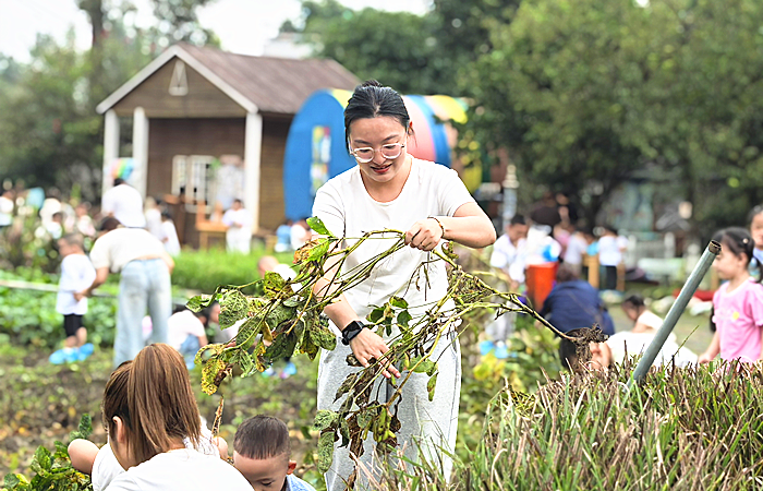 中国西部传统文化网四川讯(特约通讯员 李敬平)在阳光灿烂、硕果飘香的美好时节,2025年10月11日成都市新都区斑竹园街道升庵村关工委与新都一幼马家分园携手,共同为孩子们打造了一场别开生面、充满欢乐与教育意义的幼儿园丰收节活动。本次活动不仅让孩子们亲身感受到了丰收的喜悦,更促进了他们对自然和生活的认知,展现了社区与幼儿园紧密合作的积极成果。 活动当天,升庵村仿佛变成了一个欢乐的海洋。孩子们在老师和关工委志愿者的带领下,兴高采烈地来到了活动场地。现场被五彩斑斓的农作物装饰得格外美丽,金黄的甘蔗、饱满的花生……各种各样的果实堆积如山,散发着大自然的芬芳,引得孩子们阵阵惊叹。 活动伊始,升庵村关工委的志愿者们就为孩子们带来了一场生动有趣的“丰收知识小课堂”。他们用简单易懂的语言,向孩子们讲解了农作物的生长过程、丰收的季节特点以及农民伯伯辛勤劳作的故事。孩子们听得津津有味,一双双好奇的眼睛里闪烁着对知识的渴望。有的孩子忍不住举手提问:“阿姨,为什么花生长在土里呀?”志愿者们耐心地解答,让孩子们对大自然的奥秘有了更深的了解。 接下来的“丰收大比拼”环节将活动推向了高潮。孩子们被分成小组,进行拔甘蔗、摘豆角、摘花生等比赛。他们小小的身影在农作物堆里忙碌着,稚嫩的小手努力地操作着,虽然动作有些笨拙,但脸上却洋溢着认真和专注。一旁的老师和关工委工作人员不停地为孩子们加油鼓劲,欢呼声、笑声此起彼伏。比赛结束后,孩子们品尝着自己亲手收获的果实,脸上露出了无比满足的笑容。那一刻,他们不仅品尝到了丰收的甜蜜,更懂得了劳动的价值和意义。 在这个美好的丰收季节里,升庵村关工委与新都一幼马家分园共同谱写了一曲充满爱与希望的乐章。相信这次丰收节活动将成为孩子们童年生活中一段难忘的回忆,激励他们在未来的日子里,像茁壮成长的农作物一样,不断收获知识与快乐,迈向更加美好的明天。 |