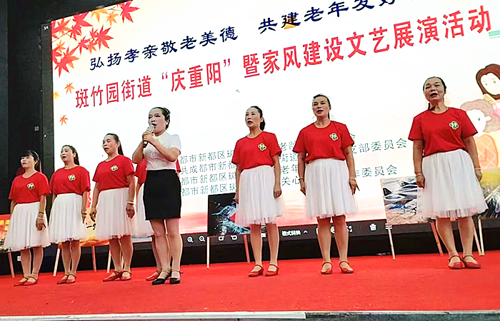 中国西部传统文化网四川讯(特约通讯员 李敬平)秋高气爽、丹桂飘香。在一年一度的重阳佳节到来之际,为了弘扬中华民族尊老、敬老、爱老的传统美德,丰富街道老年朋友的文化生活。10月29日上午,成都市新都区斑竹园街道关工委联合街道老年人协会、老年人体育协会,在安桥村水云轩农家乐演艺厅举办“庆重阳”暨家风建设文艺展演活动,为广大老年朋友带来了一场“孝老敬亲”的文化盛宴。 展演活动在柏水社区关工委气势磅礴的威风锣鼓《精忠报国》中拉开了序幕,展现了老年朋友努力进取的时代风采。最美不过夕阳红,歌伴舞《中国好家风》,舞蹈《母亲》、《我的祖国》,一曲曲高亢的旋律,一段段优美的舞姿,无不反映着斑竹园老年人热爱生活、蓬勃向上的精神风貌。 小品《清廉家风永传承》、《母爱》,诗朗诵《家风颂》、音乐快板剧《常回家看看》以多种形式演绎“孝道”,不断将活动推向高潮,赢得台下观众阵阵掌声。故事分享《杨氏家风谱新篇》、声乐故事《红色旃檀家国情》展现了老年人健康向上的精神风貌。展演在快板《移风易俗诵》中落下帷幕。 整场展演简约、俭朴、庄重、大气,以中老年文艺爱好者为主的团队表演了精湛绝伦、流光溢彩的节目,为全社会进一步营造了“尊老、爱老、敬老、助老”的良好氛围。 |