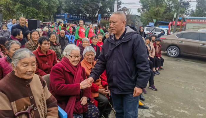 演出前,由书记致辞,陈书记首先向各位长辈们致敬,祝他们节日愉快,同时也倡导各位长辈们保持乐观心态,凡事不要斤斤计较,要有一颗包容、宽容之心,活出精彩,活出健康。随后关工委丁主任特别为百岁老人的到来送上诚挚的祝福,祝愿老人福寿安康、平安快乐,并亲手为她戴上围巾,感受到社区的温暖和关怀。