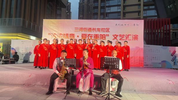 中国西部传统文化网四川讯(特约通讯员 钟名扬)10月29日晚,长龙社区润扬观澜鹭岛三期广场热闹非凡,一场重阳节主题暖心活动精彩开启,上百名辖区居民热情参与。 此次活动由长龙社区关工委精心筹备。17点,爱心义诊区域便排起了队,专业医师耐心为检查身体、答疑,给出专业健康建议。爱心商家也贴心送上花椒香囊,还普及实用养生知识,让居民收获关怀与健康小窍门。 18点,文艺汇演拉开帷幕,歌舞表演精彩不断,演员们用优美舞姿和动听歌声传递节日祝福与对生活的热爱,引得掌声阵阵。