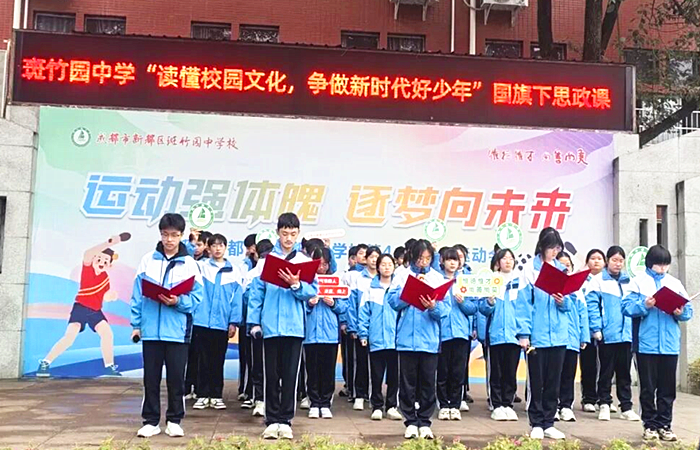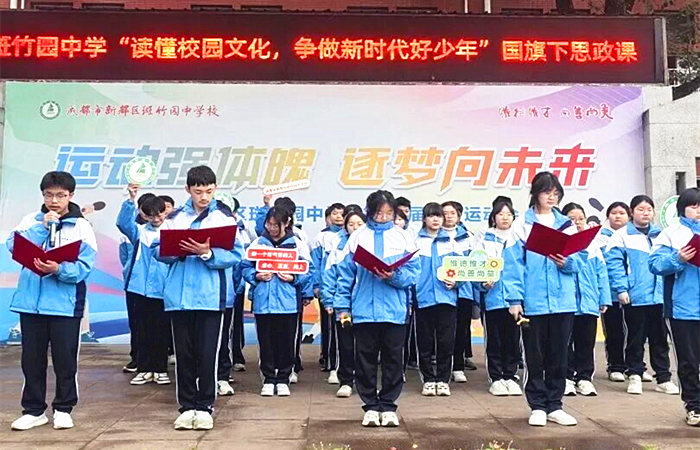 中国西部传统文化网四川讯(特约通讯员 李敬平) 2026年1月29日,成都市新都区斑竹园中学关工委开展“深耕校园文化•践行育人使命”核心文化理念国旗下思政课上教育活动,九年级2班全体师生以一场关于校园文化的深度对话,开启了新一周的精神成长之旅。 校园文化是学校的精神根基,它不是冰冷的标语,而是流淌在我们血液中的力量。九年级2班同学以朗诵与解读相结合的形式,将校园文化核心理念娓娓道来:校训:惟德、惟才,尚善、尚美 , 教师的立身之基与育人之向;办学理念:做一个有气节的人,虚心、正直、向上, 教师的精神坐标与育人核心;校风:相依共进,自强不息,教师的集体担当与奋进姿态;教风:立根亮节,用心扶持,教师的职业准则与育人之道;学风:事事用心,节节向上,教师的引导之责与示范之任。 校园文化是学校的灵魂,更是我们共同的精神家园。以上核心文化理念,既是学校 88 载办学经验的凝练,也是未来发展的方向指引。愿我们每位教师都能将这些理念融入日常教学与管理,以 “惟德惟才” 为立身之本,以 “有气节” 为精神坐标,以 “立根亮节” 为职业准则,以 “用心扶持” 为育人之道,与学生相依共进,与学校自强不息,共同培育 “事事用心、节节向上” 的优良学风,让斑竹园中学的校园文化真正落地生根、开花结果,培养出更多有品德、有才华、有气节、有追求的时代新人,共同书写学校更加辉煌的明天。 岁率军出征,以‘匈奴未灭,何以家为’的担当保家卫国。他的‘气节’,是虚心学习的谦逊——初入军营时向老将请教战术;是正直无畏的品格——面对强敌毫不退缩;是向上奋进的斗志——一生从未停止开拓疆土。这与我们的办学理念一脉相承——真正的气节,是既有扎实的学识,又有挺拔的脊梁!” 校园文化是无声的导师,是永恒的灯塔。 愿每一位斑中学子都能在这片沃土上,以文化浸润心灵,以匠心追逐梦想,像斑竹一样拔节生长。 |