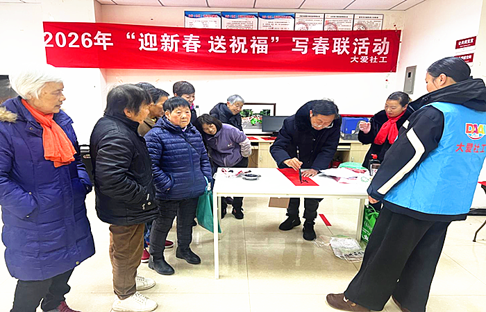 中国西部传统文化网四川讯(特约通讯员 李敬平)腊月年关近,墨香暖人心。为弘扬中华优秀传统文化,营造欢乐祥和的节日氛围,丰富社区老年朋友的精神文化生活,2月9日上午,成都市新都区斑竹园街道北星村关工委联合大爱社工,在斑竹园街道北星村为老服务站开展“迎新春•送祝福”写春联活动。大爱社工特邀新繁书画院老师走进社区,将浓浓的年味和新春的祝福送到老人们手中。 活动现场翰墨飘香,年味浓郁。书法老师挥毫泼墨,笔走龙蛇,一幅幅寓意吉祥、充满喜庆的春联和一个个苍劲有力、形态各异的“福”字跃然纸上。前来参与活动的老年朋友们热情高涨,有的围在老师身边认真观摩,细细品味书法艺术的魅力;有的精心挑选自己心仪的吉祥话语请老师书写;有的则迫不及待地将刚写好的春联和“福”字铺展开来晾干,脸上洋溢着喜悦的笑容。红纸黑字,一横一竖都承载着对新春的美好祈愿,一撇一捺都传递着社区对老年人的深切关怀。 大爱社工工作人员及服务站工作人员在现场积极协助,维持秩序,帮忙传递、晾晒春联,并为有需要的老人详细讲解春联的贴法和传统习俗。活动不仅让老人们在家门口就享受到了高水准的文化服务,感受到了传统书法的艺术之美,更让他们提前感受到了社区大家庭的温暖和浓厚的节日气息。许多老人表示,手写的春联比印刷品更有温度、更有年味,这份特别的“文化年货”让他们心里暖洋洋的。 此次活动是北星村为老服务站深化为老服务、丰富文化养老内涵的又一暖心举措。通过书写春联这一传统形式,不仅传承了春节贴春联的民俗文化,更搭建了社区与老年人之间情感交流的桥梁,增强了老人们的社区归属感和生活幸福感。下一步,服务站将继续整合资源,开展更多形式多样、内容丰富的文化活动,用心用情陪伴社区老年人乐享晚年,共同营造尊老、敬老、爱老、助老的和谐社区氛围。 |