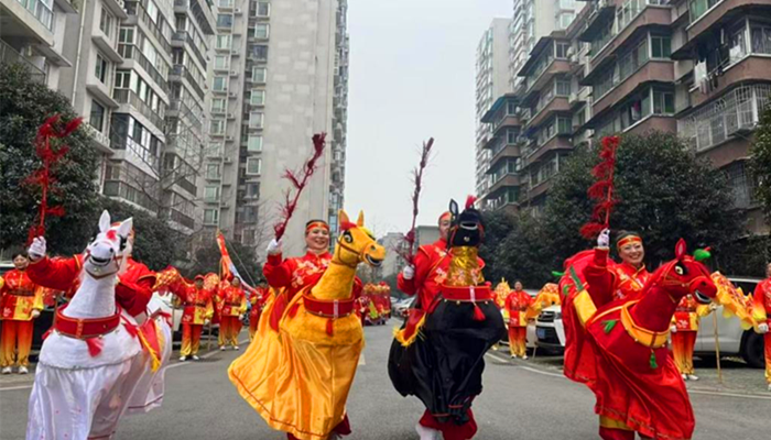 中国西部传统文化网四川讯(特约通讯员 贾光瑞)2026年2月4日,八二一小区内锣鼓喧天、彩影翻飞,由成都市新都区桂湖街道金都街社区关工委举办“民俗进社区”迎新春巡游活动热闹开演。舞龙、腰鼓、秧歌、汉船等经典民俗轮番登场,特色竹马表演惊艳亮相,数百名业主沿途围观喝彩,用一场质朴热烈的民俗盛宴,奏响了丙午马年的新春序曲。 活动在铿锵有力的腰鼓表演中拉开帷幕。二十余名队员身着红绸盛装,鼓点时而急促如惊雷滚地,时而舒缓似春雨润物,鲜艳的鼓绸随动作翻飞如焰,瞬间点燃全场气氛。紧随其后的秧歌队舞步轻盈欢快,队员们手持彩扇、手绢,脸上洋溢着幸福笑容,扭出了邻里和睦的精气神,围观业主的欢呼声此起彼伏。 最引人注目的当属舞龙表演,金黄龙身缀满亮片,在龙珠指引下腾跃盘旋、穿梭游走。龙首高昂时如凌云驾雾,龙尾摆动处似江海翻腾,表演者默契配合,将龙的灵动与威严展现得淋漓尽致,孩童们追着龙身欢呼雀跃。一旁的汉船憨态可掬,彩船在“艄公”的引领下左右摇摆,船中“佳人”衣袂飘飘,伴着锣鼓声演绎水乡趣事,逗得观众捧腹大笑。 此次活动的最大亮点是竹马表演。表演者身着红金配色的传统戏服,腰间系着白、黄、黑、红四色竹马道具,马身缀满鲜艳绒饰,马头造型栩栩如生。随着锣鼓节奏响起,队员们手持马杆,步伐轻快灵动,时而策马奔腾、时而缓步前行,竹马在胯下起伏跳跃,仿佛真马驰骋,将“万马奔腾”的马年寓意演绎得活灵活现。四色竹马列队穿梭在小区道路上,色彩斑斓、气势十足,引得沿途业主纷纷驻足鼓掌,孩童们追着竹马欢呼“好热闹”。 此次大家的精心筹备,让传统民俗与马年新春完美契合,既让中华优秀传统文化在社区绽放光彩,更搭建了邻里交流的平台。业主们纷纷表示,竹马表演既喜庆又有新意,让大家在热闹中感受到了浓浓的年味与社区归属感。此次活动不仅为小区增添了新春喜气,更以民俗为纽带凝聚了社区力量,为共建和谐温馨的邻里家园注入了新活力。 |
