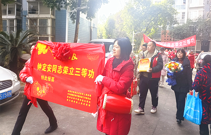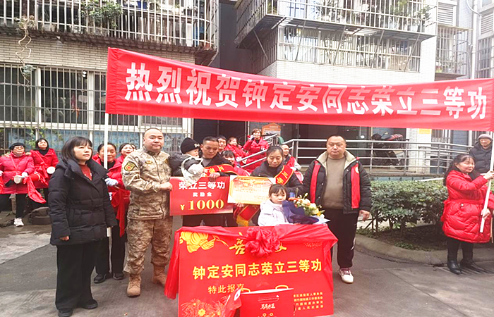中国西部传统文化网四川讯(特约通讯员 李敬平)2026年3月2日,成都市新都区斑竹园街道关工委组织柏水社区五老腰鼓队前往辖区荣立三等功的现役军人钟定安家中,隆重送上立功喜报与新春祝福,以热烈仪式传递尊崇与敬意。 活动现场,喜庆的腰鼓铿锵有力、热闹非凡,引得邻里乡亲纷纷驻足喝彩。街道与社区领导为军属佩戴光荣绶带、送上喜报和慰问品礼金,与家属亲切交谈,详细了解家庭生活情况,对战士在部队忠诚履职、奋勇争先、荣立三等功表示热烈祝贺,对军属默默支持国防事业致以诚挚感谢。军属倍感光荣与温暖,表示将继续做好坚强后盾,鼓励孩子扎根军营、再立新功。 此次活动既让军人军属切实感受到“一人立功、全家光荣”的崇高荣誉,也进一步弘扬了拥军优属优良传统,营造了崇军尚武、关爱军人军属的浓厚社会氛围。 |